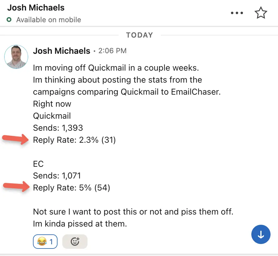 There are a handful of posts on Reddit, with users asking about Emailchaser and how it impacts email deliverability, whether emails dodge the spam filters, etc.